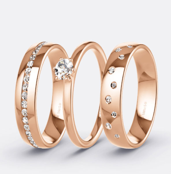 Für viele Paare gehört ein Diamant zum Trauring dazu. Bei uns wählen Sie neben der Größe und der Anzahl der Edelsteine auch den Schliff, die Fassung und die Position.